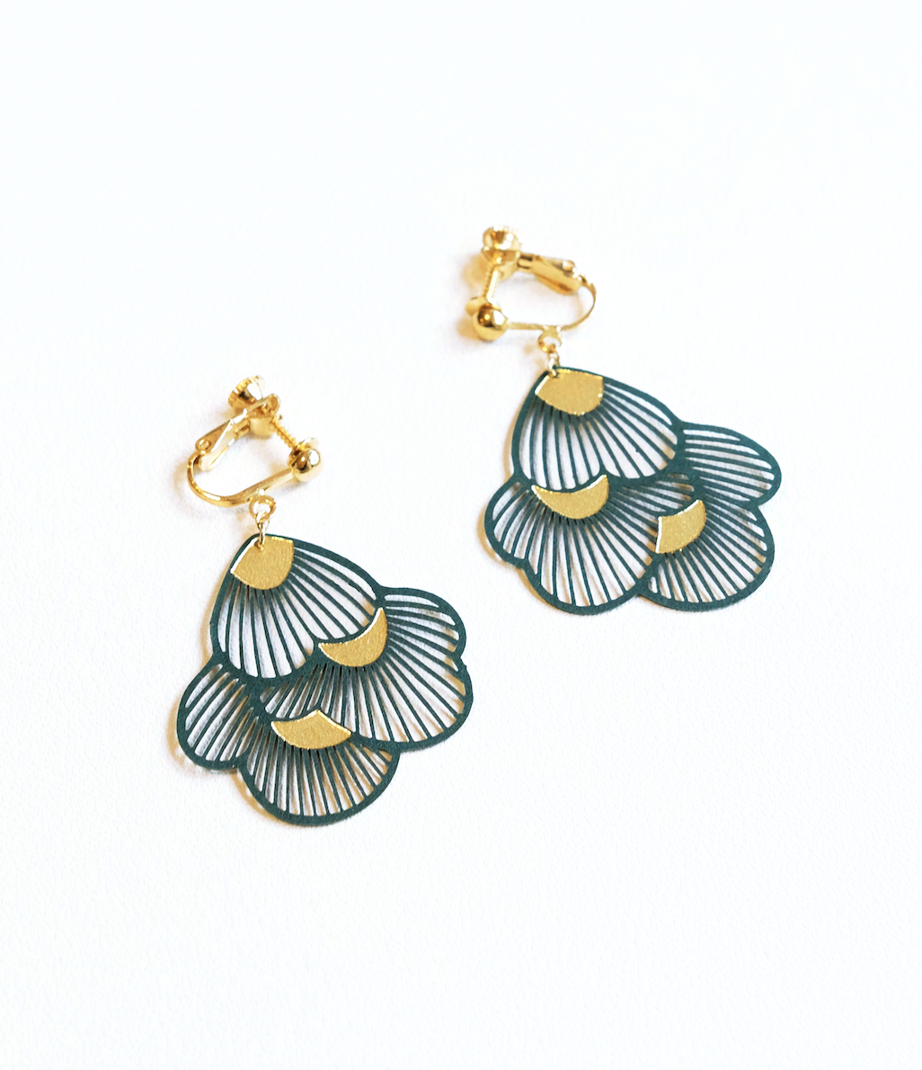 デ ザ イ ナ ー ( 古 堅 ち ひ ろ ) 自 身 の 金 属 ア レ ル ギ ー が き っ か け で 生 ま れ た ペ ー パ ー ジ ュ エ リ ー は 、人 に も 環 境 に も 優 し い 新 感 覚 の 紙 ア ク セ サ リ ー 。