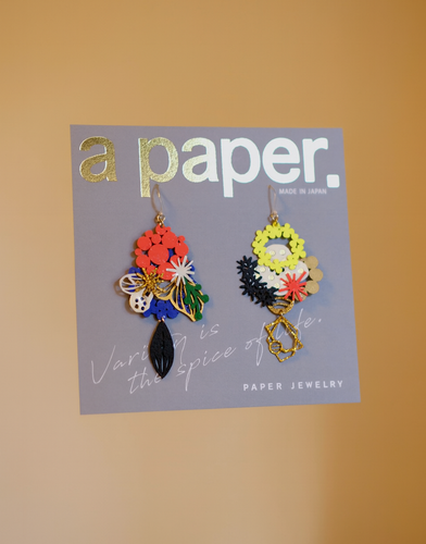 これまでのPaper Jewelryには無いサイケデリックカラーで構成された限定ピアス。